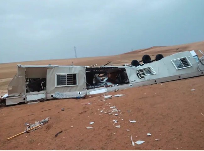 مشهد لا يصدق.. ص،،اعقة رعديه تضرب حافلة بالسعودية وتطير الإبل ج،،ثثاً