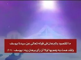 فإن البرهان الذي رءاه يوسف عليه السلام وجاء ذكره في قول الله تبارك وتعالى: وَلَقَدْ هَمَّتْ بِهِ وَهَمَّ بِهَا لَوْلا أَن رَّأَى بُرْهَانَ رَبِّهِ كَذَلِكَ لِنَصْرِفَ عَنْهُ السُّوءَ وَالْفَحْشَاء إِنَّهُ مِنْ عِبَادِنَا الْمُخْلَصِينَ [يوسف:24].