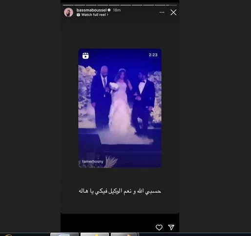 ونشرت بسمة تعليق عبر خاصية الاستوري بصفحتها الشخصية بموقع “إنستجرام”، وقالت فيها: “حسبي الله ونعم الوكيل فيكي يا هالة”.