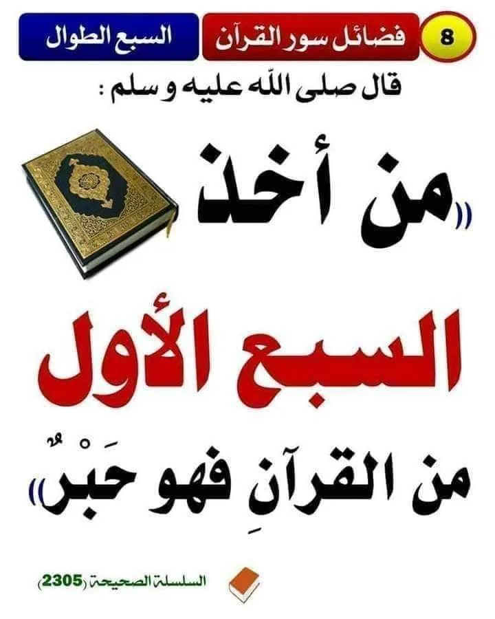 24443- عن عائشة، أن النبي صلى الله عليه وسلم قال: ” من أخذ السبع الأول فهو حبر ” (1) 24444- عن أبي هريرة، عن النبي صلى الله عليه وسلم،
