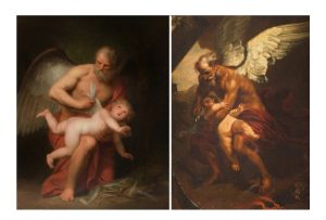 Magnifica obra de Pierre Mignard (1612-1695). Cronos conocido como el dios griego padre del tiempo en el renacimiento, le arrebata las alas a Cupido, quien representa al amor. «El amor lo vence todo, pero el tiempo vence al amor».