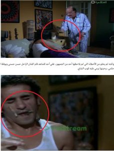 هنا نجد أن كيس الشاي الذي يرميها حسن حسني بعيدا أصبحت على وجه أحمد حلمي في نفس المشهد، الشاي والسجائر على وجه أحمد حلمي