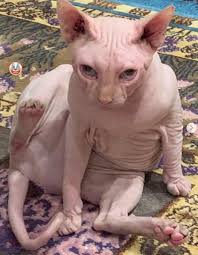 وتعالوا معنا لنعرف أكثر عن هذا القط الغريب والذي يراه البعض مر..عب: هذا يعرف بالقط الفرعوني وهو سلاله من القطط تسمي “سفينكس”، تم ته.جين هذه السلاله في الستينات. وهو معروف بإف.تقاره للفراء، وليس دائماً ما يكون ذو لون واحد بل أحياناً يكون متعدد الألوان.