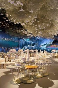 نشر موقع “فيرال” الامريكى صور قاعة احتفال التى سيقام فيها حفل زفاف ابنه حاكم دبى محمد بن راشد… تصميم القاعة شئ خيالى وكانت هذه القاعة من تصميم العريس والتى شاركته التصميم هى شركة “ديزاين لاب ايفنتس” واستخدم فى تصميم القاعة 65 الف قطعة كريستال ، و 15 الف عصا مضيئة و 4 الالف طائرة ورقية