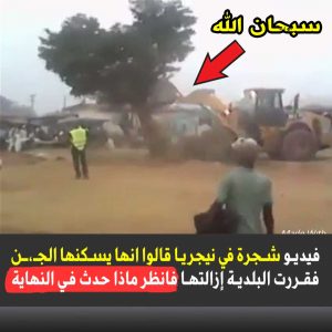 انتشر فيديو على مواقع التواصل الإجتماعي يظهر فيه أحد الجرارات وهو يحاول اقتلاع شجرة كبيرة من جذورها، حيث أشيع أن هذه الشجرة بحسب ما جاء في الفيديو أنها توجد في نيجيريا وأن الجـ،ـن يسكن في تلك الشجرة، وهو ما دفع الأهالي الذين يحيطون بها إلى الشكوى إلى البلدية التي قررت بدورها في النهاية إزالة الشجرة واقتلاعها من الجذور، إلا أن بحسب ما ظهر في الفيديو كأن الشجرة ترفض هذا، فكلما دفعها الجرار من جذورها تعود مرة أخرى للوقوف بشكل يثير علامات التعجب.