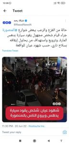 ناس سرقوا عربية من اداب و الناس كانت بتجري وراهم و دخل مخالف مـoت ناس قدامه و كانوا بيضربوا نار و اتمسكوا في النخله