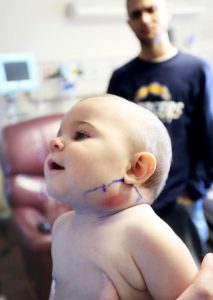 Thank you for reading this post, don't forget to subscribe!تم نقل طفلة تبلغ من العمر سبعة أشهر إلى المستشفى يوم السبت من قبل والديها القلقين جدا على طفلتهما بعد أن تضخمت منطقة أسفل فكها إلى حجم كرة جولف ونصف مع وجود بثره في الأعلى.اصطحب آرون وإيما ويتينغتون ابنتهما البالغة من العمر