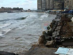 سببت موجة الطقس السيئ وارتفاع أمواج البحر في الإسكندرية، اليوم الاثنين، في تآكل جزء من شاطئ إدوارد خراط وحدوث تشققات وميل سور كورنيش الإسكندرية بطول 20 متر