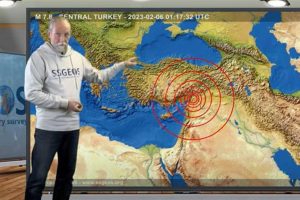 وقال إن زلزال تركيا وسوريا هو أكبر نشاط زلزالى تم رصده منذ أغسطس 2021، حيث وقع زلزال حينها. بلغت .قوته 7.6 درجة على مقياس ريختر، مما يعنى أن الزلزال الأخير تجاوز قوة زلزال أغسطس.