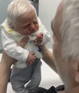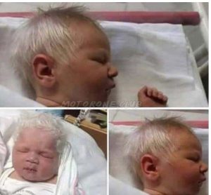 الرضيع في الحقيقة مصا.ب بمر.ض جد نادر، يطلق عليه اسم progeria، يصي.ب حالة واحدة بين 4 ملايين ولادة، حيث تظهر تجا.عيد على وجه الو.لد وجلده بصفة عامة، الذي يكون خشن الملمس أيضاً، ويقول أطباء أن هذا النوع من المواليد لا يعيش بعد سن الـ 13.