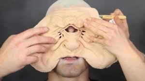 وأظهر المقطع أحدهم وهو يغيير ملامح شخص آخر ليبدو مرعباً بالاستعانة بقناع وتقنيات متقدمة في المكياج.