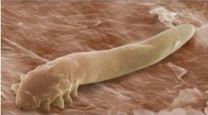 وتعرف هذه الكائنات الدقيقة باسم عث الوجه، وهي أصغر من حبة الرمل، وتملك ثمانية أرجل بشكل يشبه العناكب، وتتغذى على الزيت وخلايا الجلد الميتة، خاصة على الأنف الدهني، والوجنتين.