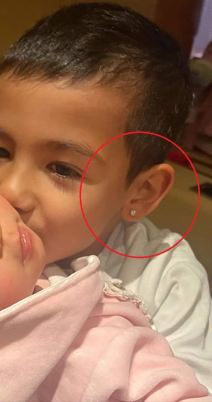 🔴 وانهالت التعليقات ضد رونالدو وجورجينا، بين رواد الموقع، بعد أن رصدوا قرطا ماسيا في أذن ماتيو اليمنى.