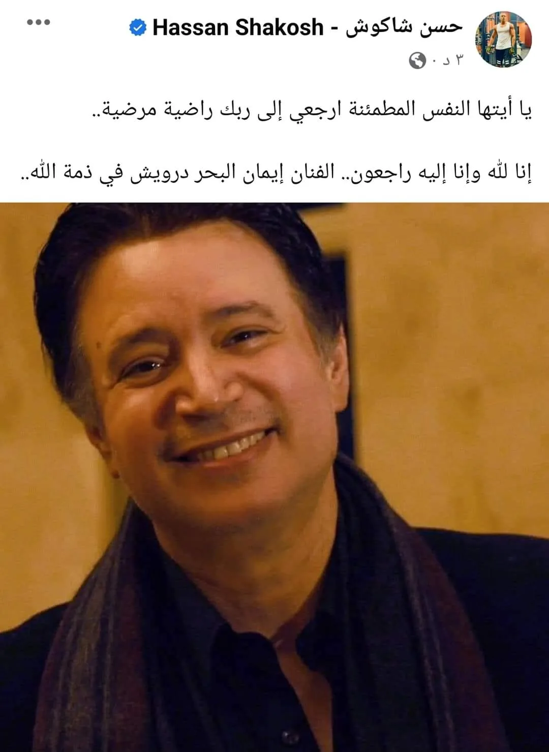 Thank you for reading this post, don't forget to subscribe!كشف مصدر مطلع، حقيقة وفاة الفنان إيمان البحر درويش بعد تردد أنباء منذ قليل وزعمت وفاته مما أثار جدلًا واسعًا على مواقع التواصل الاجتماعي، كاشفًا في الوقت نفسه كواليس نشر ابنة الفنان صورة والدها أول أمس والتي أثارت تعاطف الجمهور.