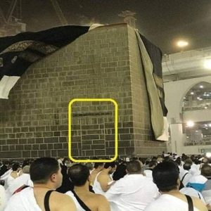 وظهرت حدود الباب للناظر إلى الكعبة من خلال خطوطه المعترضة لخطوط البناء العرضية المحيطة بالكعبة من جميع جهاتها.