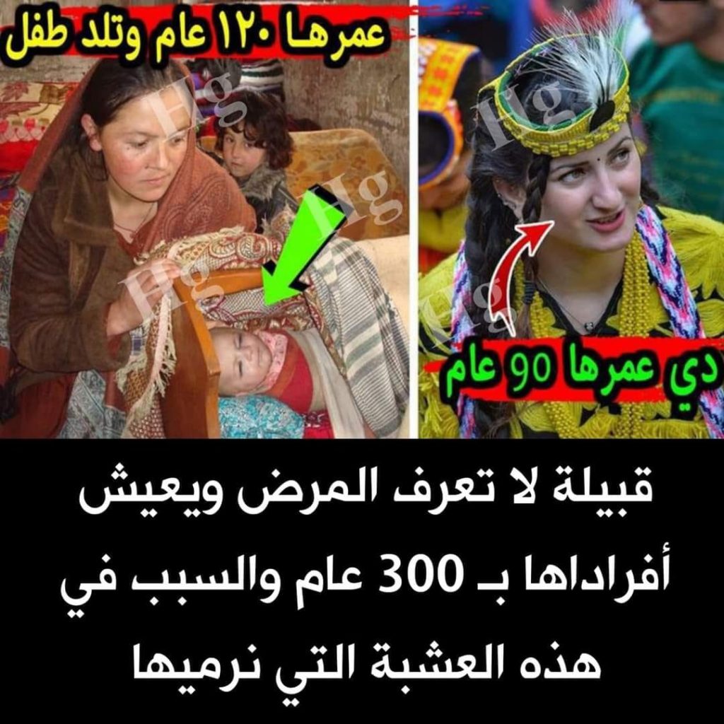 قبيلة لا تعرف المرض ويعيش افرادها بـ300 عام والسبب في هذه العشبة التي نرميها شعب الهونزا يعيش قرب جبال كاراكورام، في مكان يطلق عليه وادي الخالدين، وهم قبائل مسلمة، يبلغ