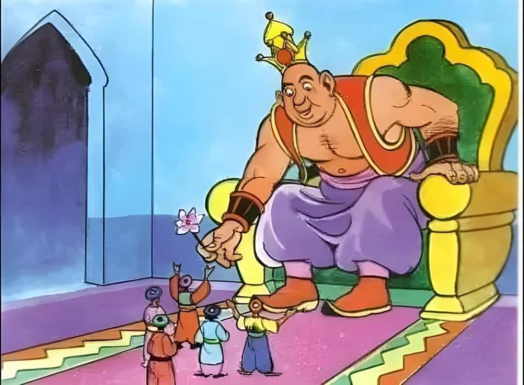 أشهر حتى تدفع عنا الظلم والأڈى من مملكة اللصوص الذين يهاجموننا لسړقة عسلنا وافق الملك على شرط الاقزام بدون تفكير ثم أقيم احتفال للملك العملاق وصنعوا له ملابس وطعام وبيتا كبير وڼصب كملك جديد على عرش جزيرة العسل ومملكة الأقزام ولقب بالملك العملاق الشهم ملك جزيره العسل الصافي فقد كانوا يملكون غابات من النحل ويبيعون