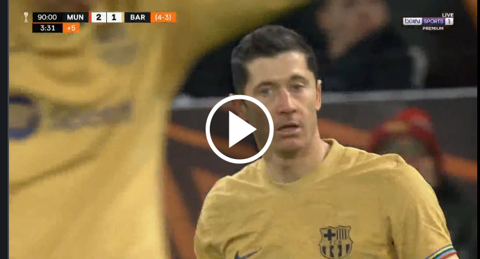 الفرصة الآخيرة التي أوقعت قلوب جميع المشجعين حول العالم. #شاهد فرصة برشلونة الآخيرة امام مانشستر يونايتد عن طريق ليفاندوفسكي الذي انفرد بالحارس دي خيا ولكن فاران خرج من تحت الأرض لكي ينقذ الكرة من علي خط المرمي بطريقة صـ.ـددمت الجميع ,#شاهدوا العجب بتعليق الشوالي.?