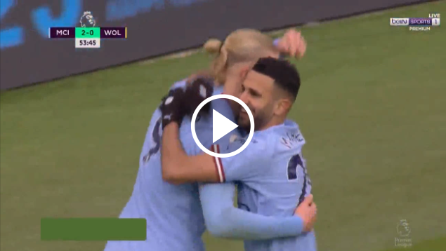 عااااجل : رياض محرز يرفض تسجيل هدف من اجل #هالاند. ? ♥ #شاهد هدف الهاتريك من هالاند امام وولفرهامبتون بعد جمال ودلال من رياض محرز الذي رفض التسجيل من اجل صديقه, #شاهدوا الرووعة.??