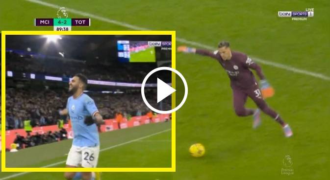 شاهد هدف رياض محرز الثاني العالمي علي طريقة ميسي بعد اسيست عالمي من حارس المرمي ايدرسون ليتم تسجيل الهدف الرابع لمانشستر سيتي في شباك توتنهام.??