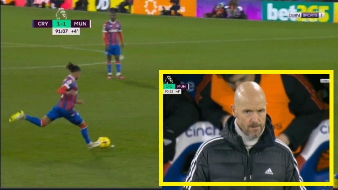 شاهد هدف كريستال بالاس الخرافي والخيالي في شباك مانشستر يونايتد في الثواني الآخيرة وصـ,ـددمة تين هاج مدرب اليونايتد وحزن برونو فيرنانديز. ? ? هددف خيالي اسطوري حرم اليونايتد من الفوز العاشر علي التوالي من بعد رحيل كريستيانو رونالدو.???