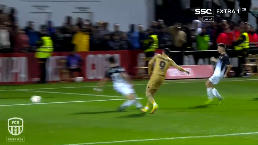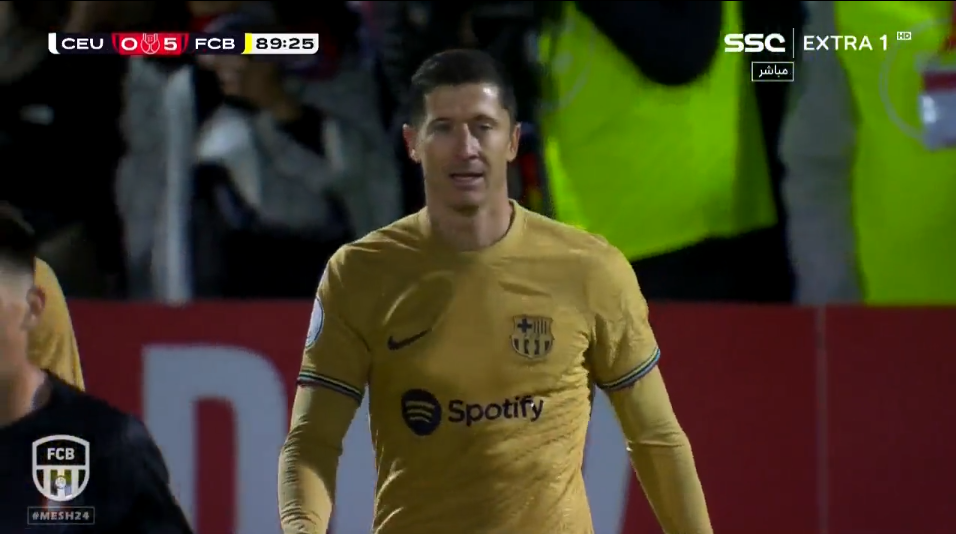 هدف ليفاندوفسكي في شباك سبته الهدف الثاني لنادي برشلونة في مرمي اتلتيكو سبته خطأ من حارس المرمي