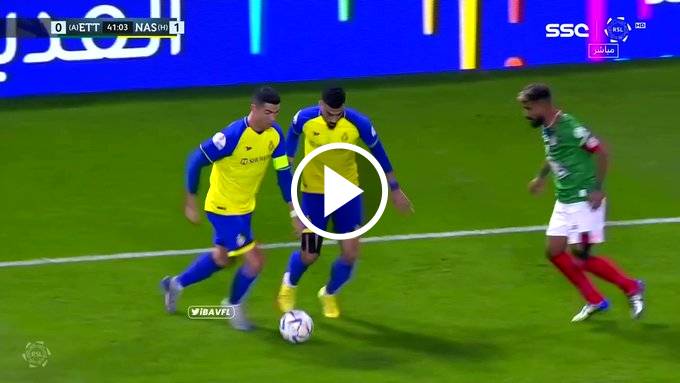 أغرب حدث في تاريخ الدوري السعودي : رونالدو يراوغ لاعب الاتفاق بالكعب في لقطة استعراضية علي طريقته الخاصة ولكن ما حدث غير متوقع وأصاب ملايين المشاهدين بالصدددمة.? دافعين مليارات في رونالدو وعندما يستلم الكرة ويراوغ ينقطع البث ، #شاهدوا العجب !!!?