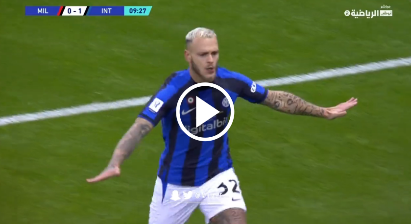 هدف لاوتارو مارتينيز العالمي في شباك ميلان في الديربي بعد لمسة عالمية ساحرة من إبن الأرجنتين بصمت علي لقب كأس السوبر للأفاعي.??